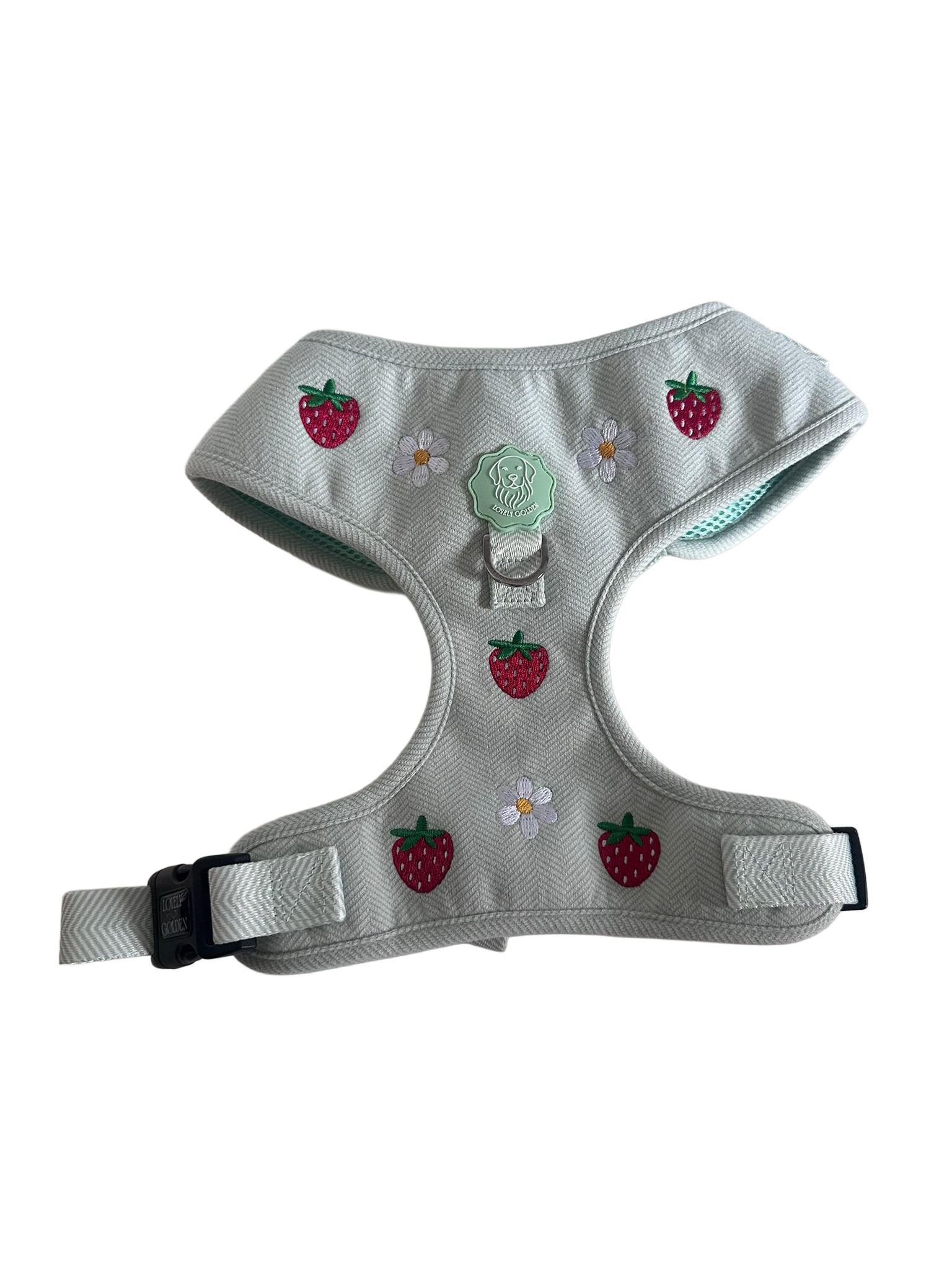 El Pack Arnés Ajustable de Tela Oxford Lovely Golden reúne todo lo necesario para paseos cómodos, organizados y versátiles: