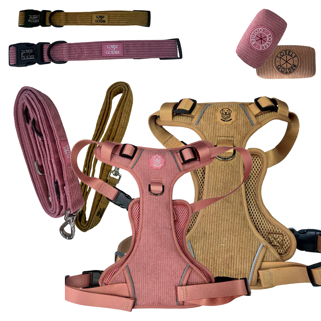 El Pack Arnés de Pana Lovely Golden está pensado para paseos con control, seguridad y estética cuidada:
